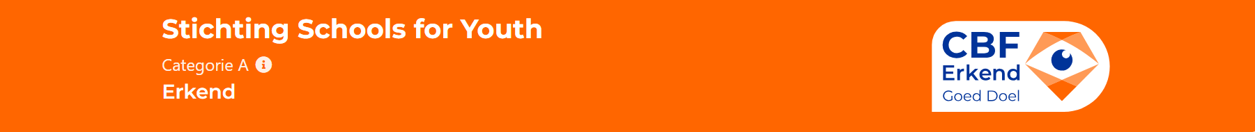 Dit is de hoogste kwaliteitsstandaard voor goede doelenorganisaties. Dit betekent dat onze financiële administratie tip-top is, onze integriteit niets te wensen overlaat, onze werkzaamheden transparant en controleerbaar zijn. Onze registratie wordt regelmatig ge-update zodat we blijvend onze standaard hoog moeten houden. https://cbf.nl/organisaties/stichting-schools-for-youth